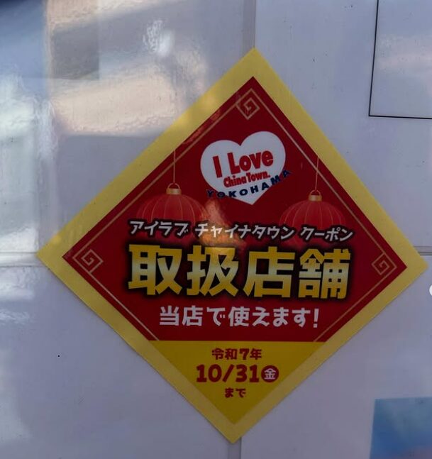 • 8/1〜 10/31「アイラブチャイナタウンクーポン」使えます