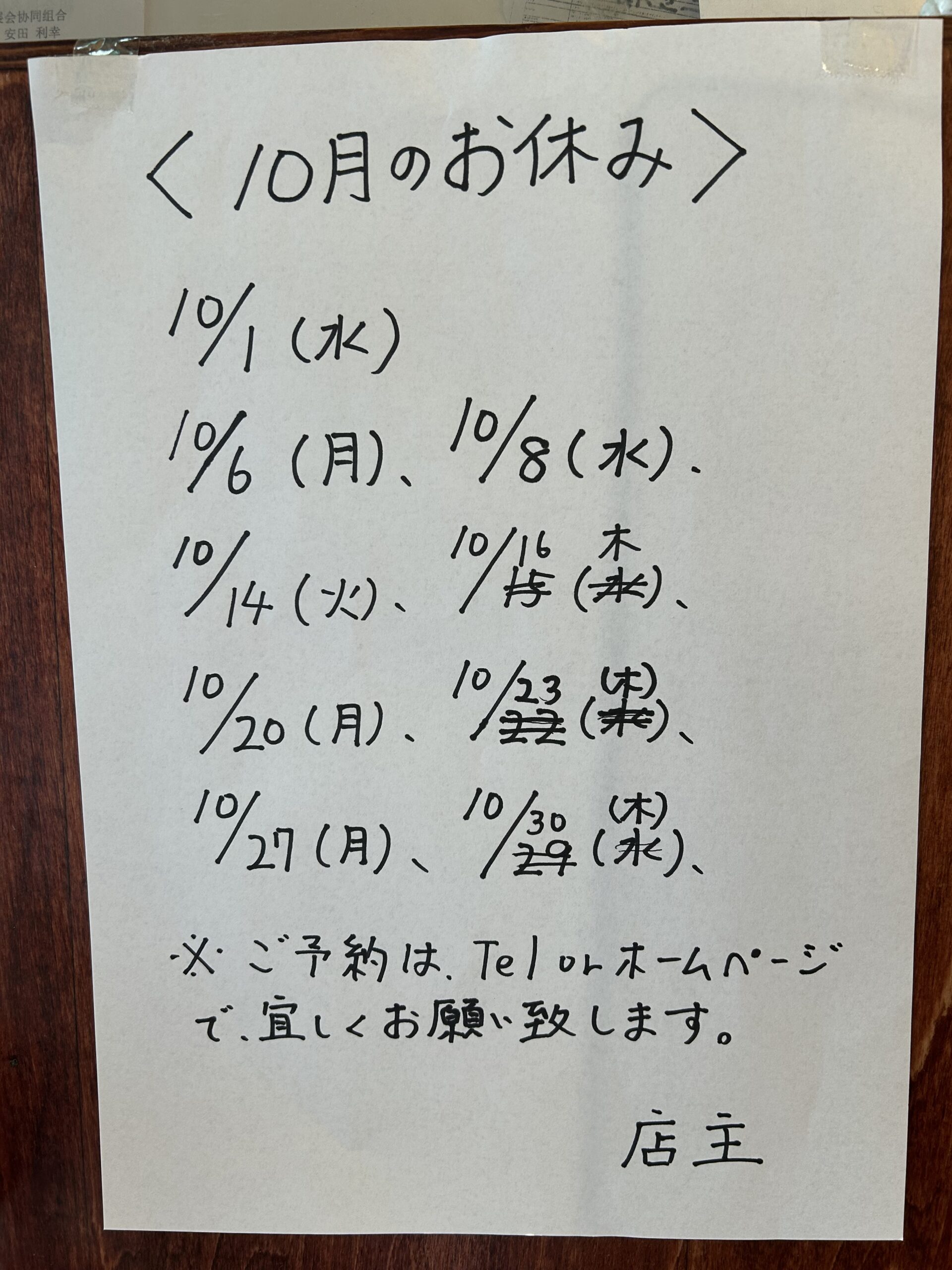 予約により、お休みが変更になる場合もございますので、当店のsnsをご確認ください。