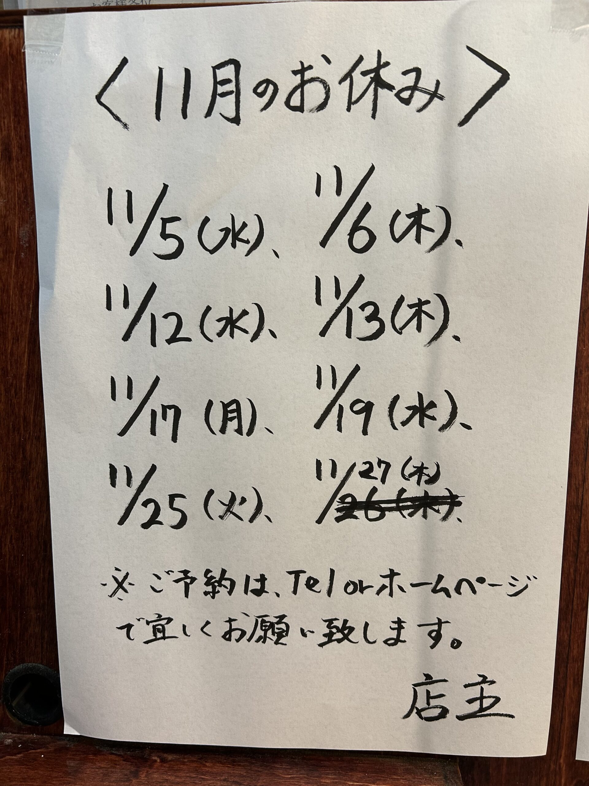 ご予約により、お休みが変わることもございますので、ご了承下さい。