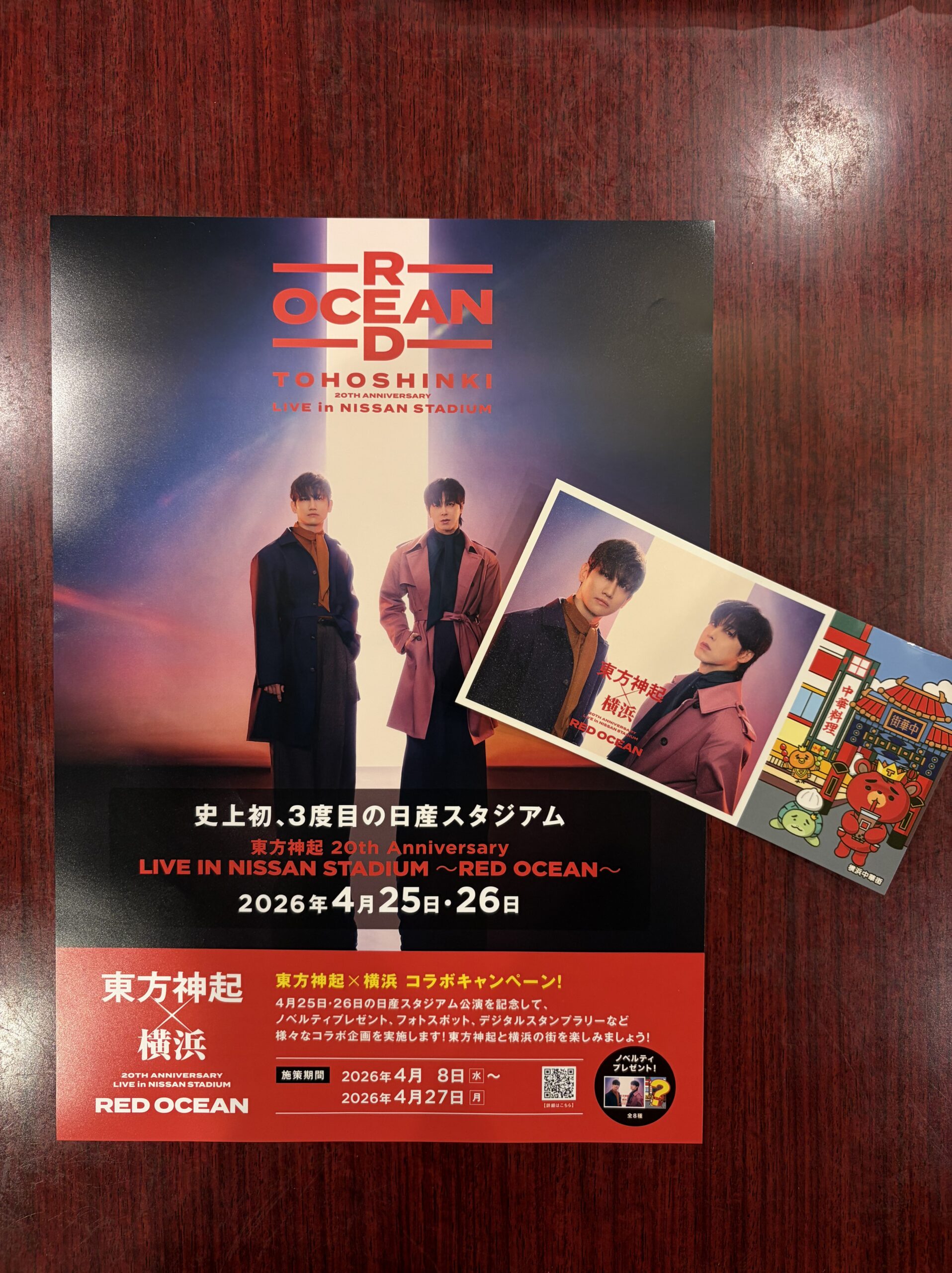 イベント 4月17日~「東方神起×横浜コラボキャンペーンに参加決定! 2026.04.16 4月17日~4月26日「 #東方神起 ×横浜コラボキャンペーンに参加決定!「 #小籠包 と春巻セット」お召し上がりの方に数量限定ステッカープレゼント! 4月25日、26日の日産スタジアム公演を記念して、横浜で東方神起の様々なコラボ企画が開催されます。たくさん横浜の街を楽しんでください。 *ステッカーの配布終了の際は、ご了承下さい。